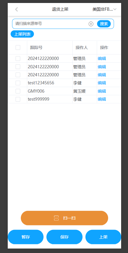 仓储收到货扫描或者输入对应的跟踪号信息查找对应的产品信息
