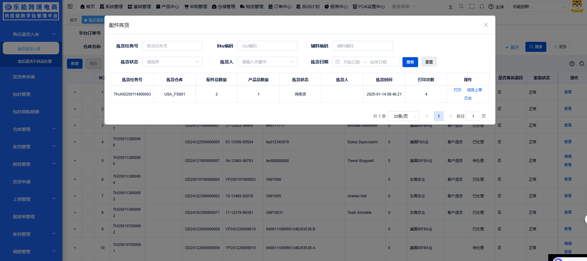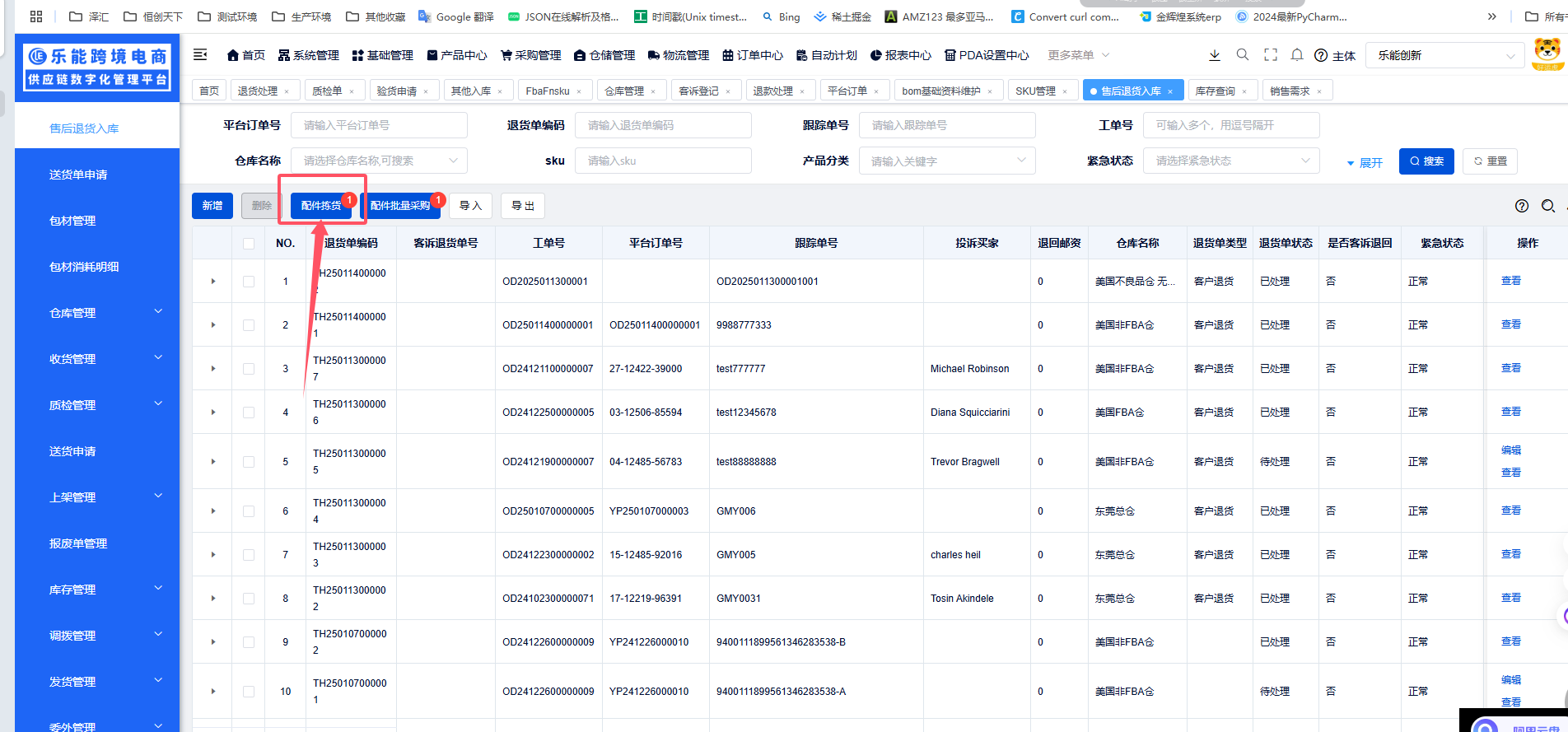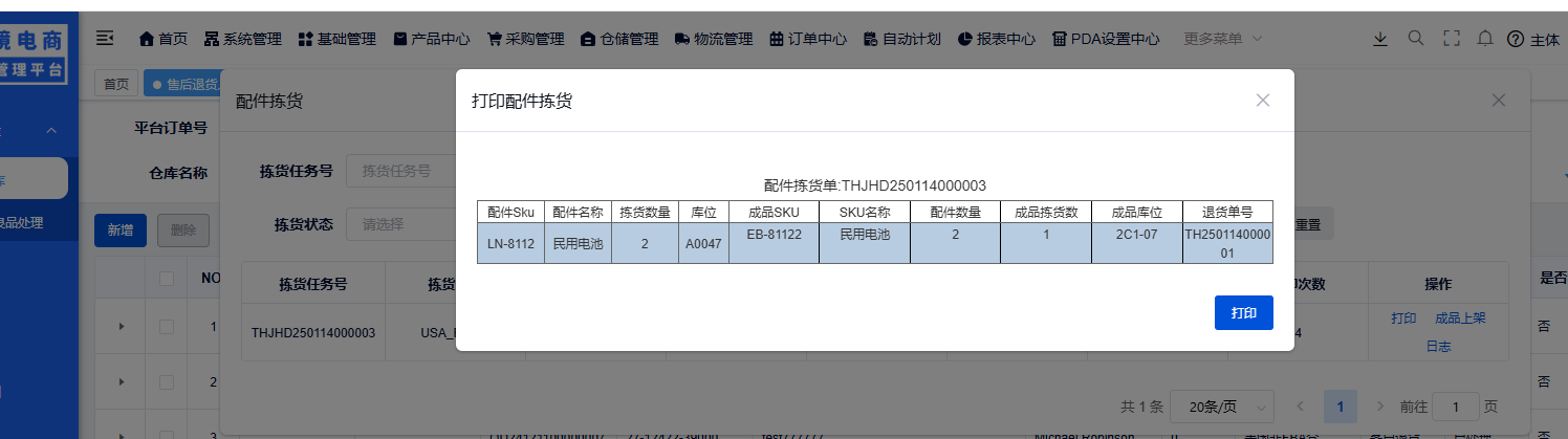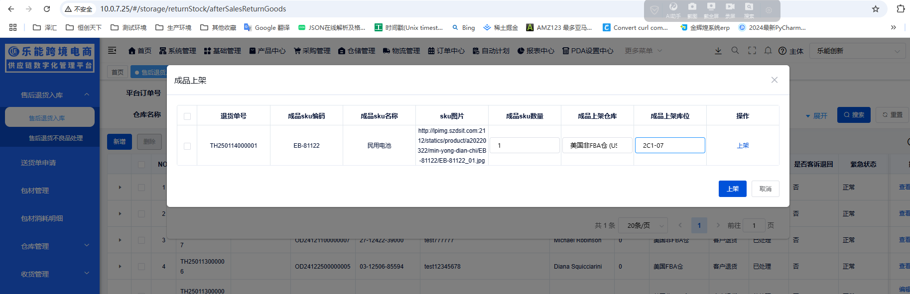 1.退货处理‘是否推送至仓库’字段选了‘是’,单据会推送到仓储管理-售后退货入库中,退货处理状态变成待收货。如果退回邮资大于50,退货订单紧急状态为加急。如果退回邮资小于50,退货订单紧急状态为正常。仓库收到货后,填写必填项,可以分批完成售后退货入库,完成后会把状态回传回到退货处理。