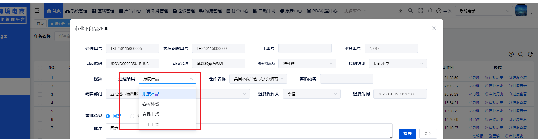 注意:功能不良、外观不良是需要上传相关的视频和图片(目前只支持上传视频)且对应的仓库选择必须是不良品仓
