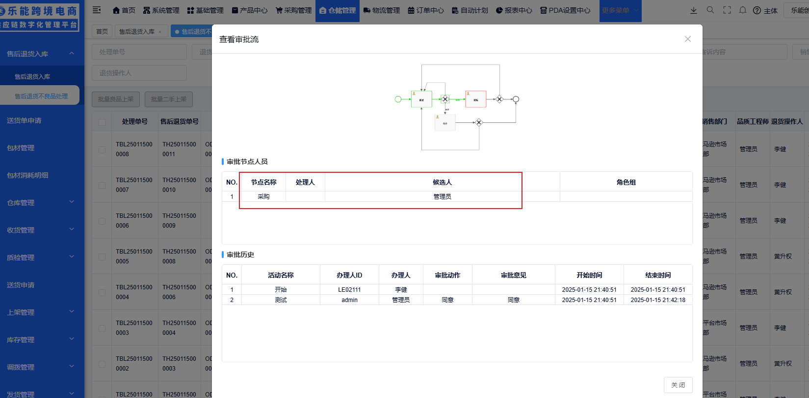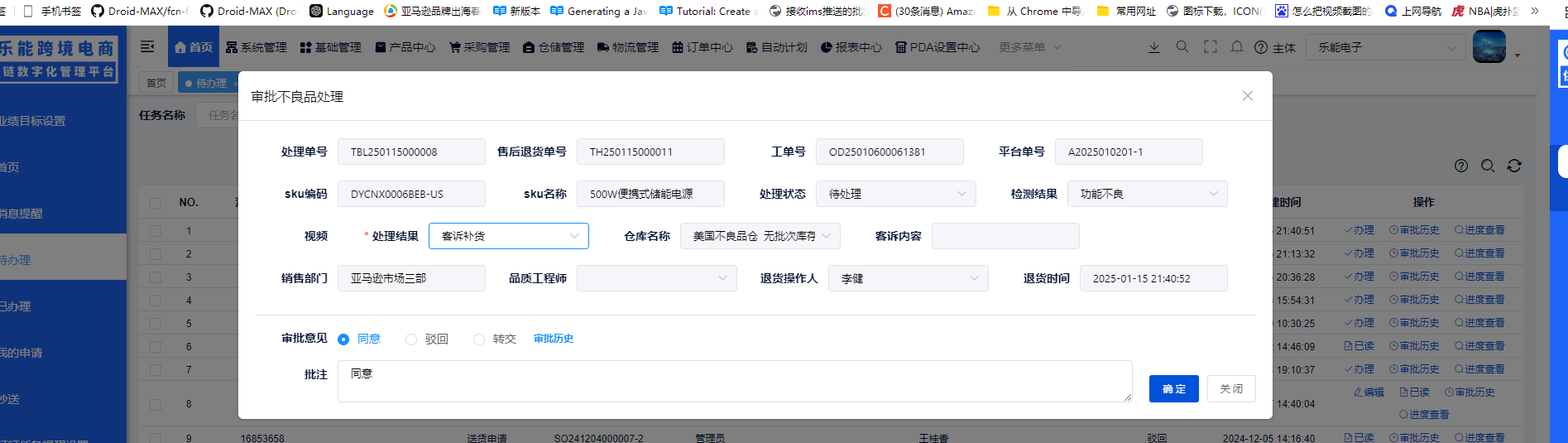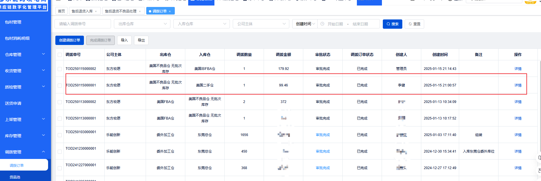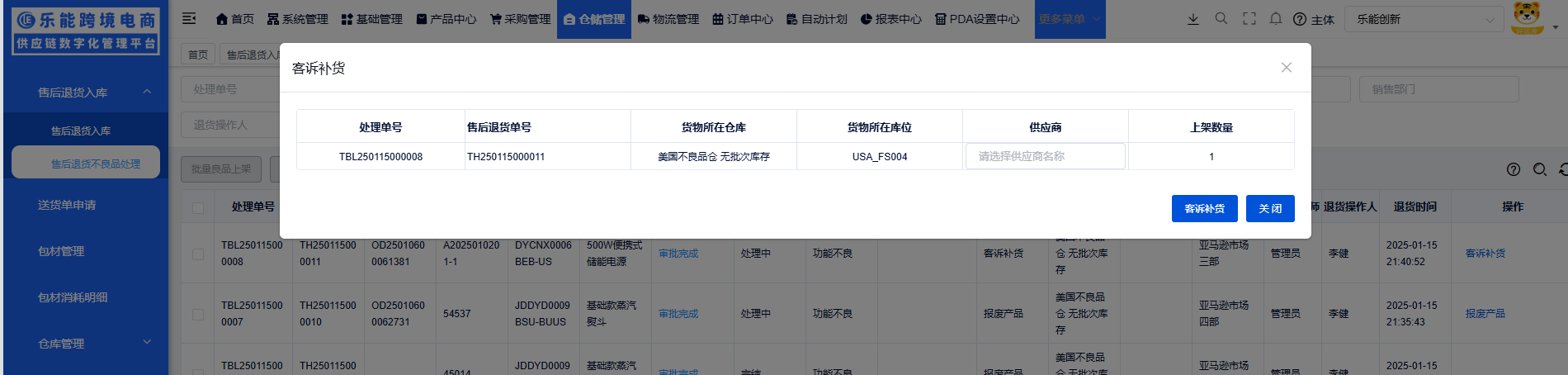 选择对应的仓库和库位,系统会自动通过不良品仓调拨到对应的仓库