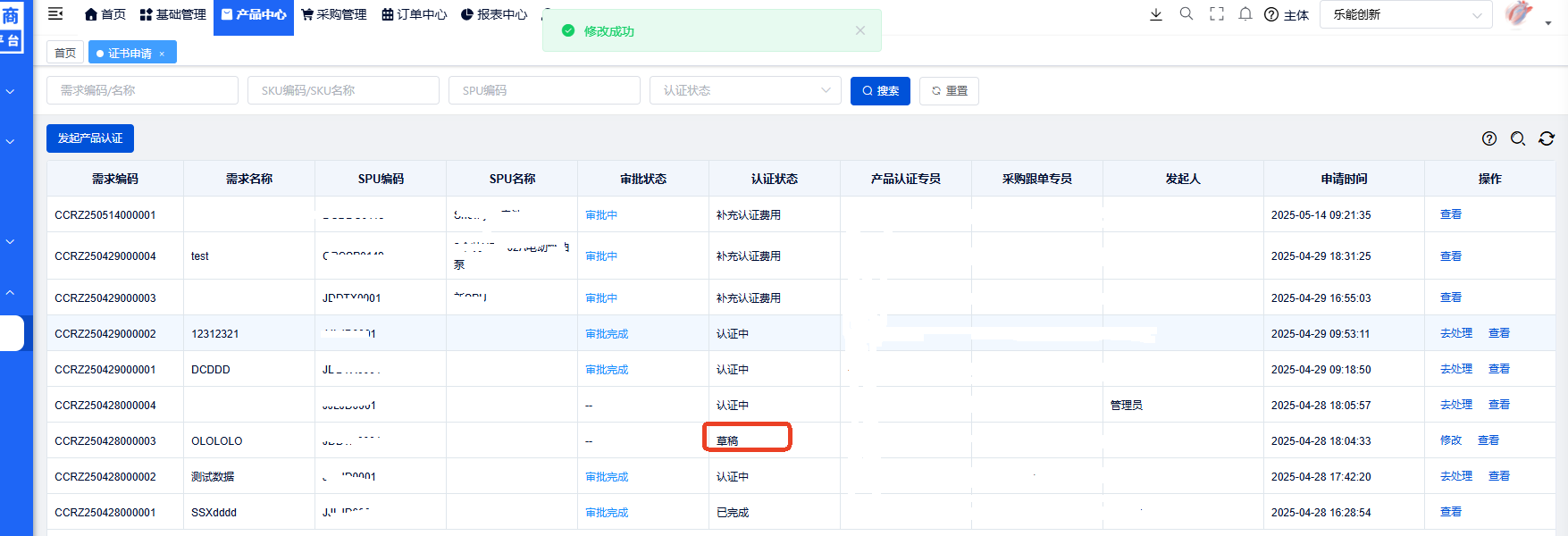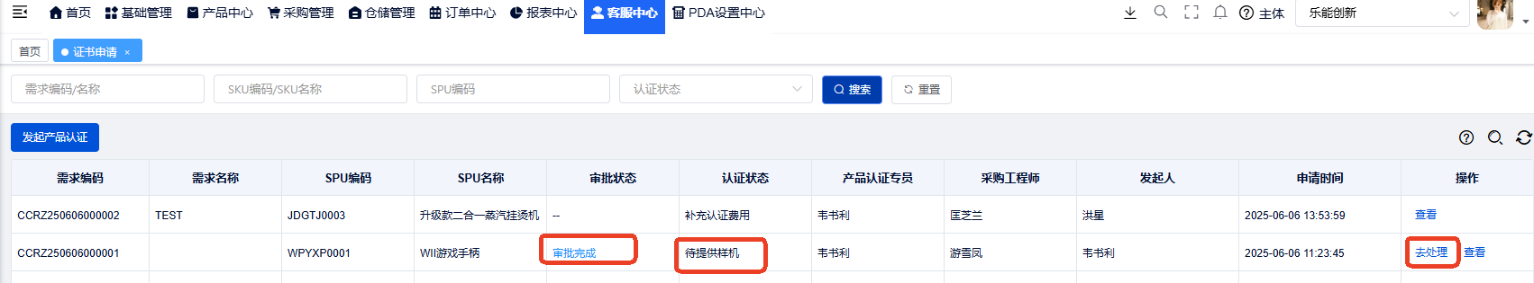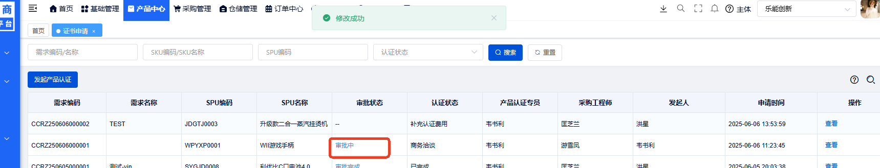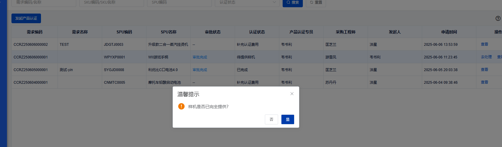 点击提交审批之后,会进入审批流; 审批通过之后会进入待提供样机