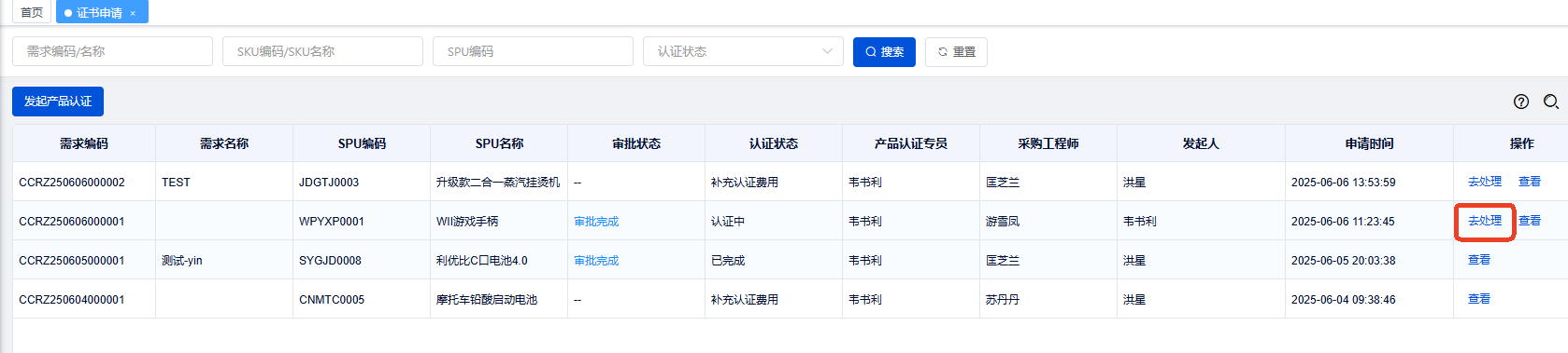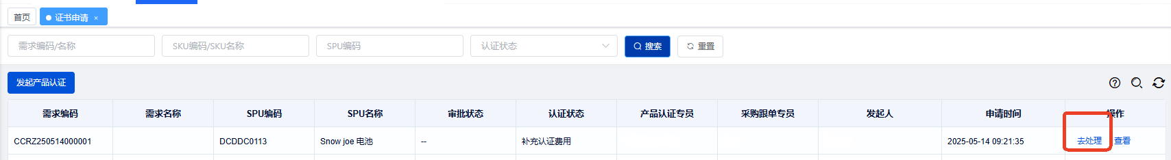 点击去处理,显示弹窗,点击是之后,就会进入认证中