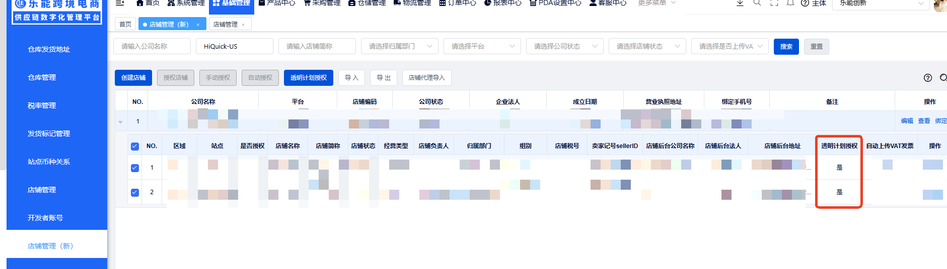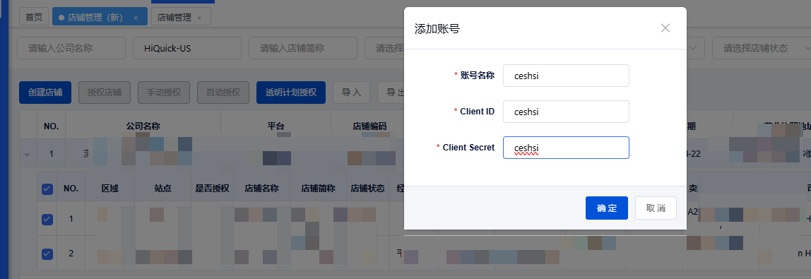 基于第一步获取到的三个字段值,在DS的店铺管理页面中,勾选对应的店铺,点击透明计划授权按钮,出现的弹窗,然后一一对应的进行维护,点击授权;这样就已经授权成功