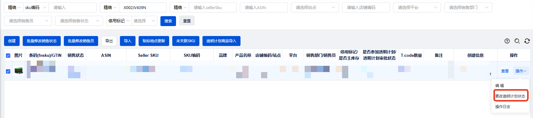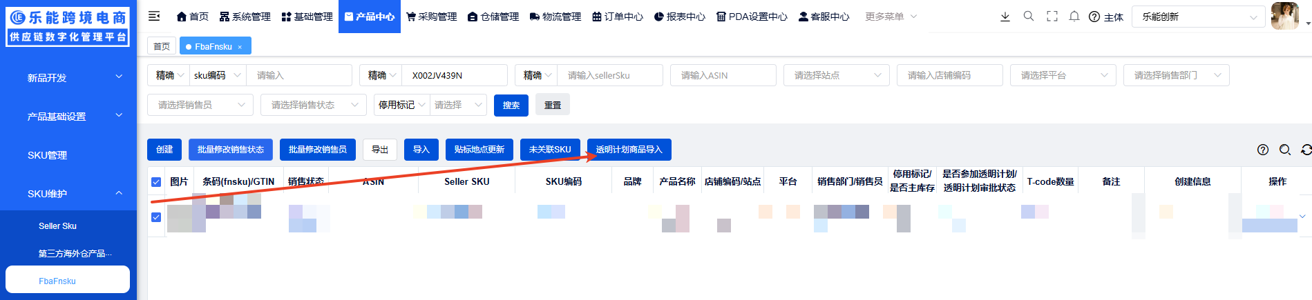 5.Fnsku管理维护对应的店铺的fnsku 参加透明计划并且维护好对应的字段内容