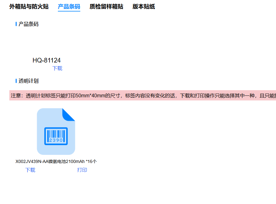 最后点击确认同步之后,会在产品条码中出现透明计划