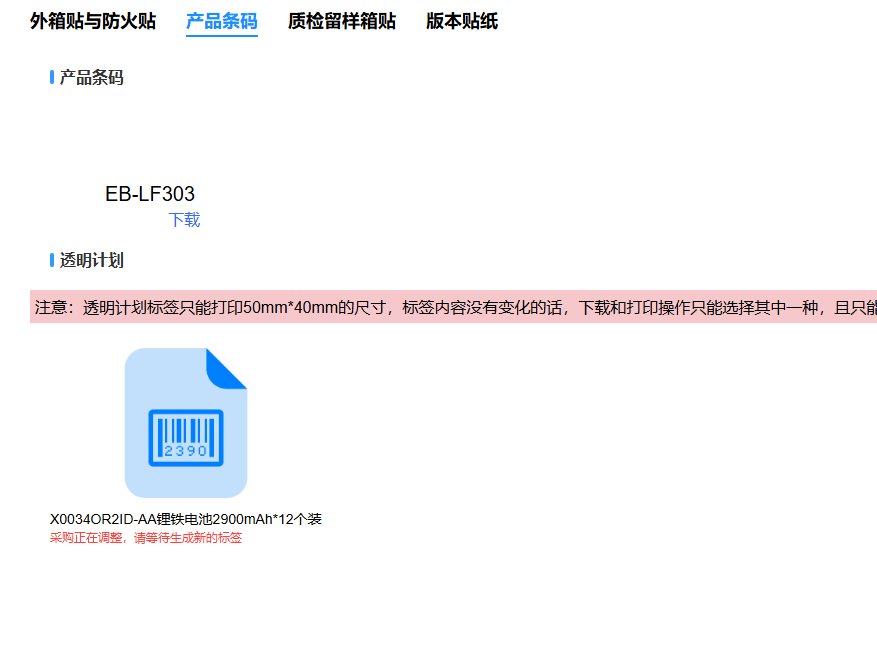 如果T-code的数量已经申请成功之后,经过采购订单变更或者采购订单变更申请,把采购数量从少变多,箱唛是有变化的,需要等待T-code申请成功之后才会更新看到的箱唛界面是
