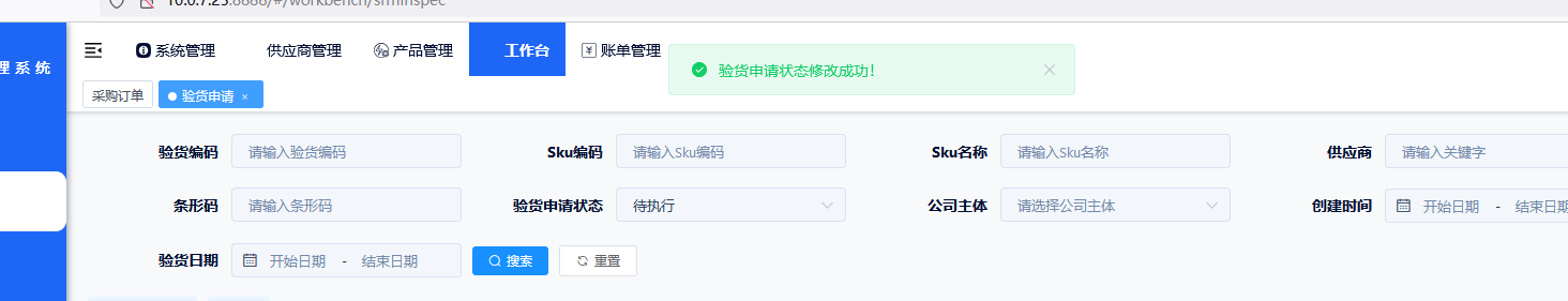 SRM供应商验货申请是供应商登录系统查看推送需要验货的数据,本系统支持对审批通过的采购订单创建验货申请单,可以创建,导出,编辑,作废,打印。